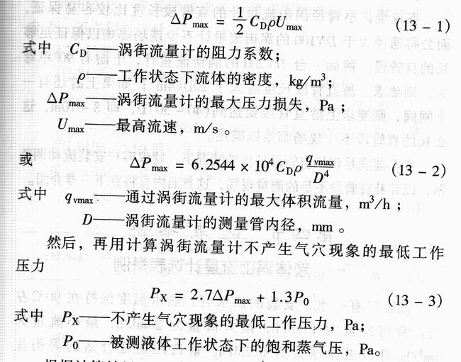 選定渦街流量計的公稱通徑后,還應根據最大流量、儀表通徑及工作狀態下流體密度,核算渦街流量計的最大壓力